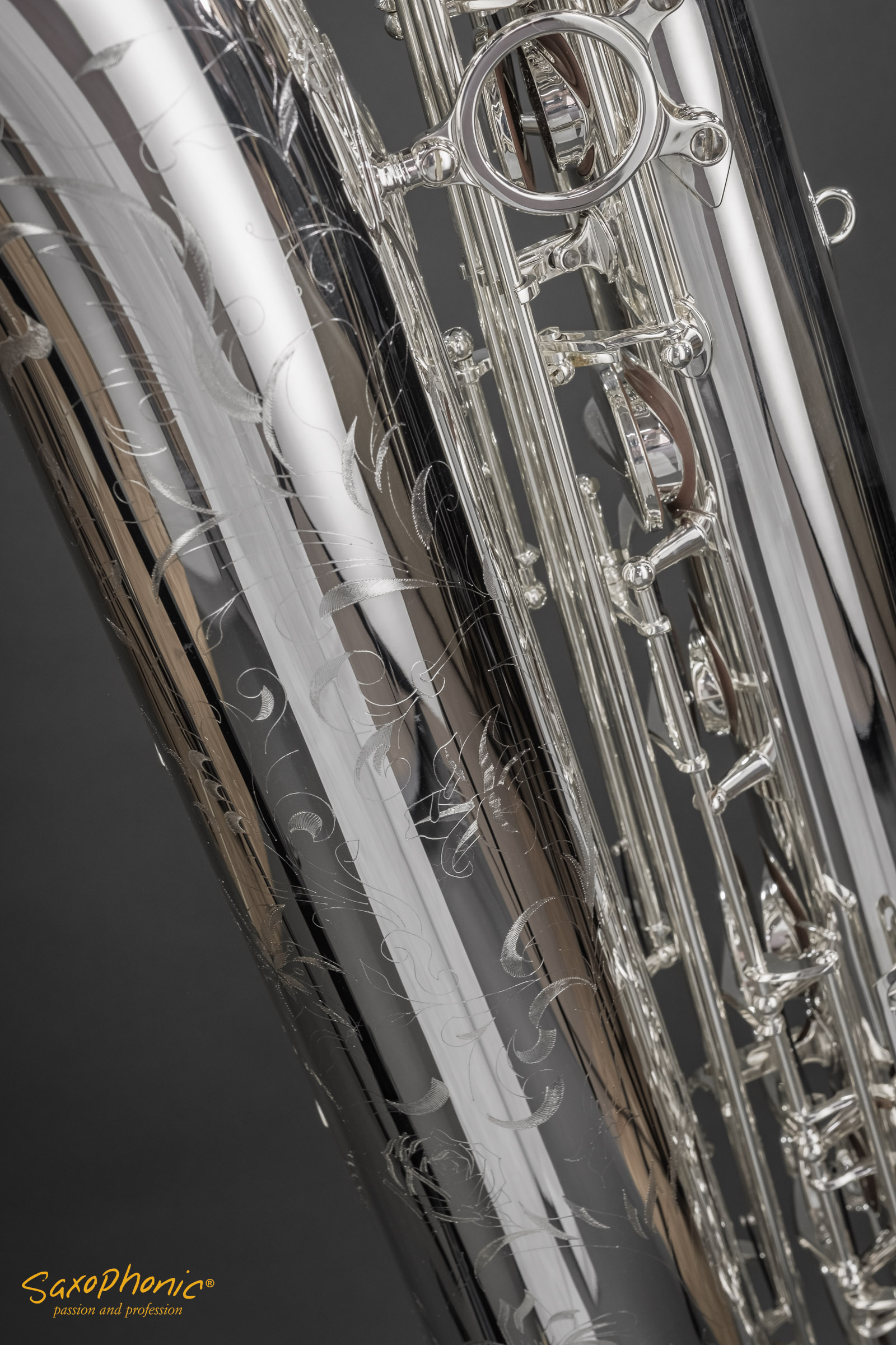 **Vorrätig** Baritonsaxophon Henri SELMER Paris Super Action 80 II, versilbert mit Gravur, Set