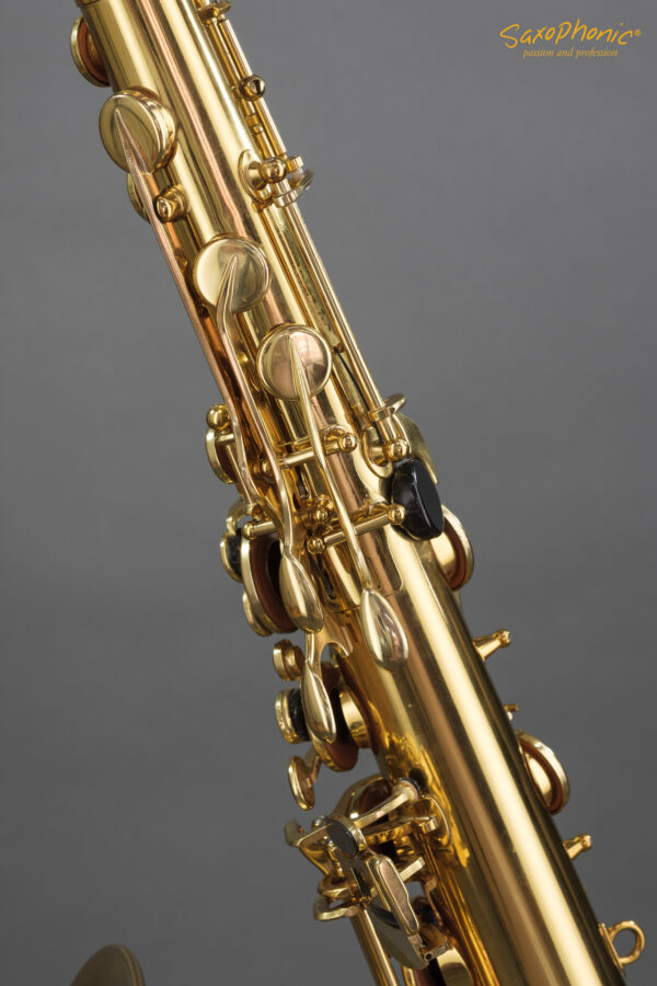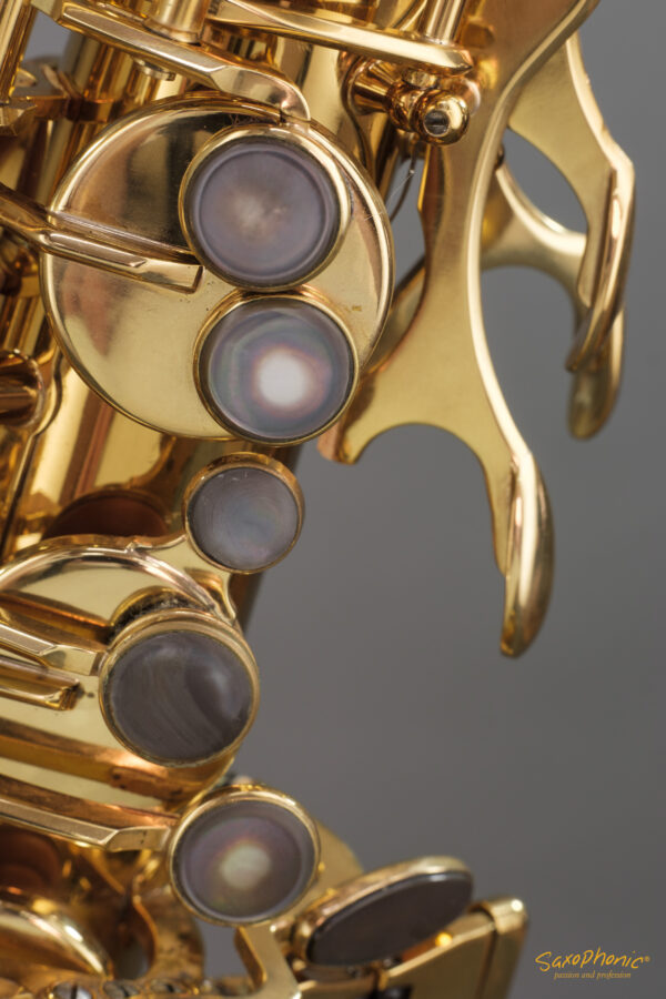 Wir haben das Saxophon in unserer SAXOPHONIC-Werkstatt gerade vollständig zerlegt und aufpoliert, teilüberholt, remontiert und feinjustiert, sodass es nun wieder einwandfrei spielt und wunderschön aussieht!