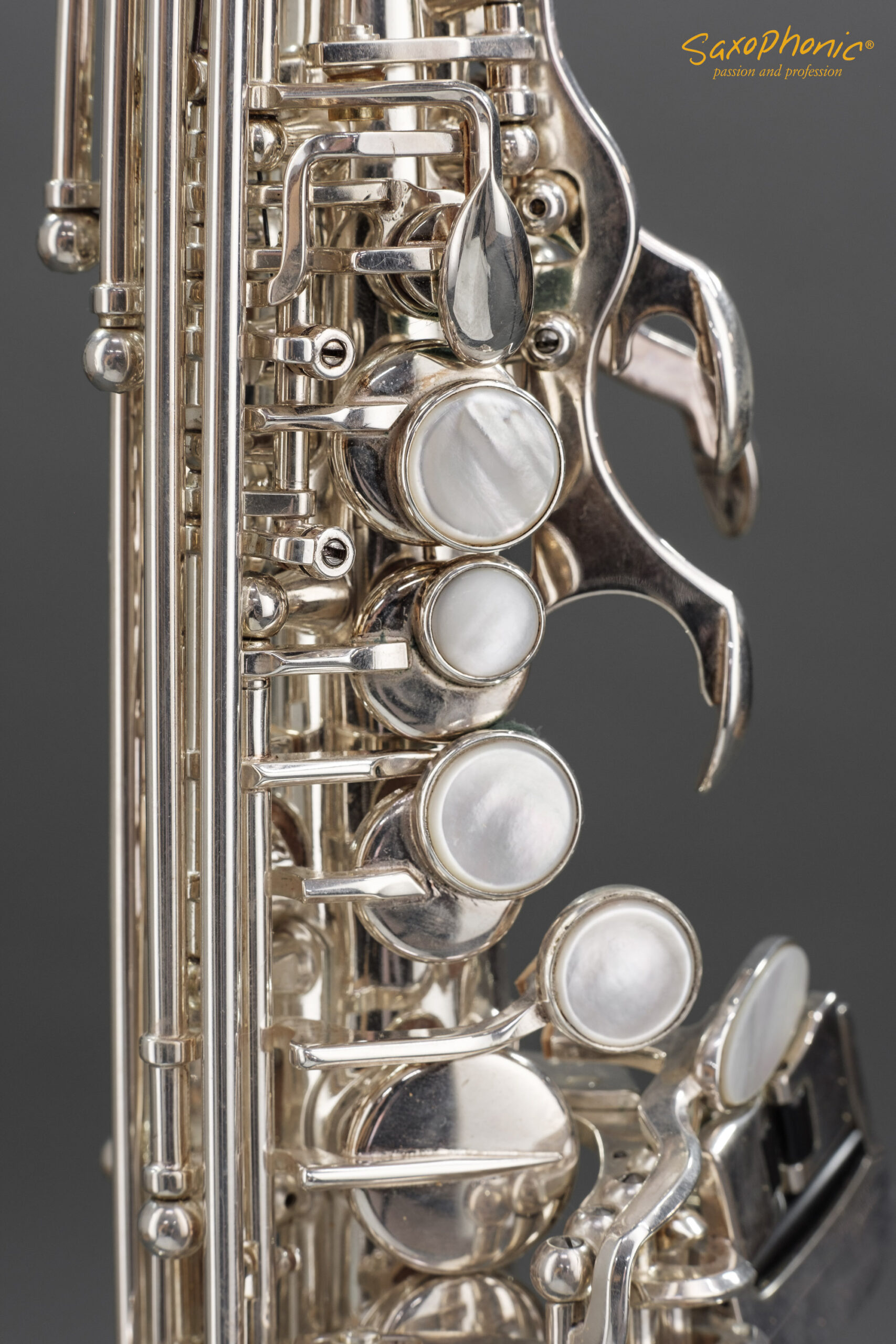 Es handelt sich bei diesem SELMER Sopransaxophon also um ein frühes Serie III, das noch den „Super Action 80 Serie III“-Stempel trägt.